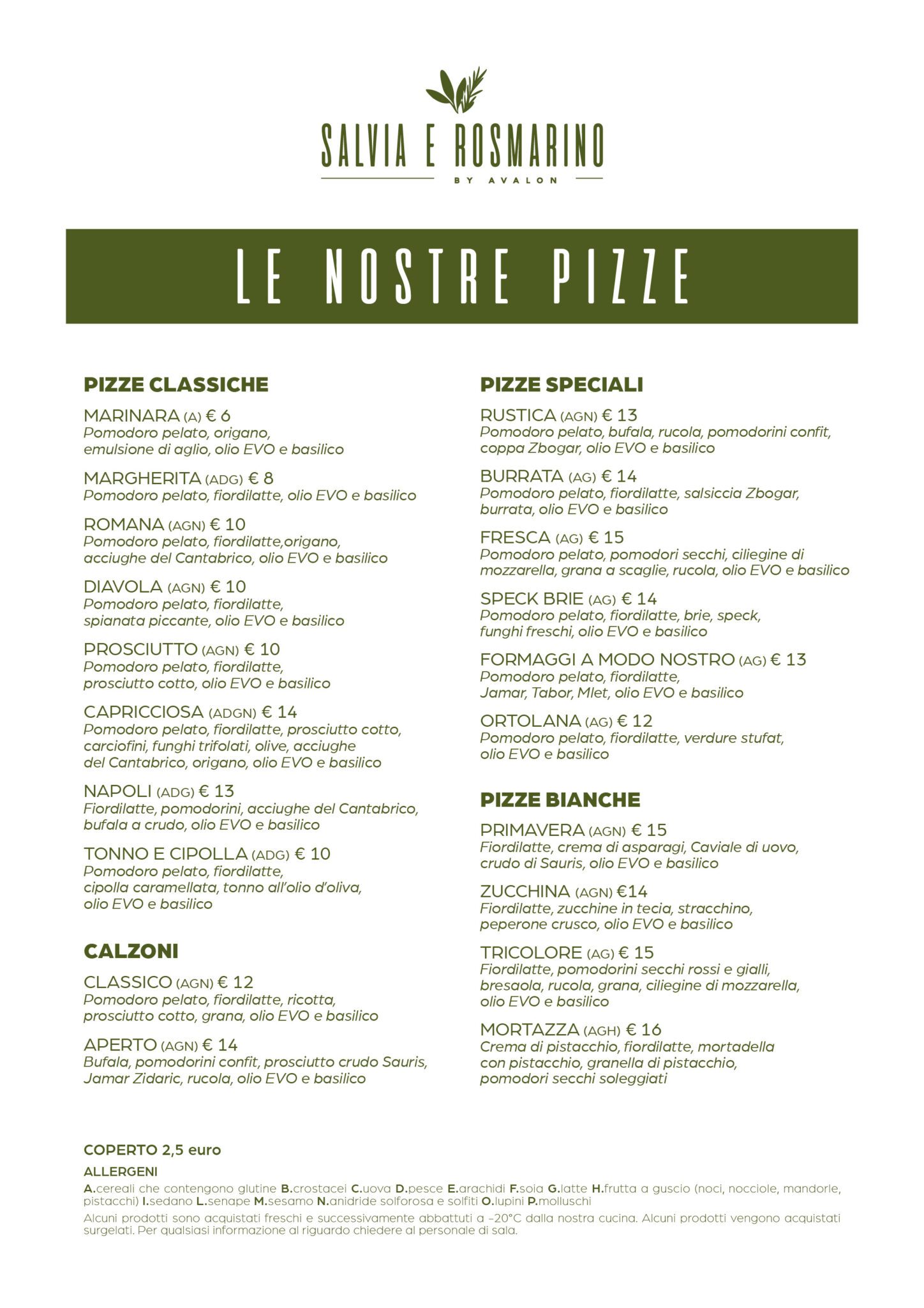 Domenica 9.00–23.00 cucina e pizzeria sia a pranzo che a cena